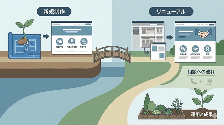 同じ法律事務所のサイトでも、この二つでは考える順番や重視する点が変わります。📘